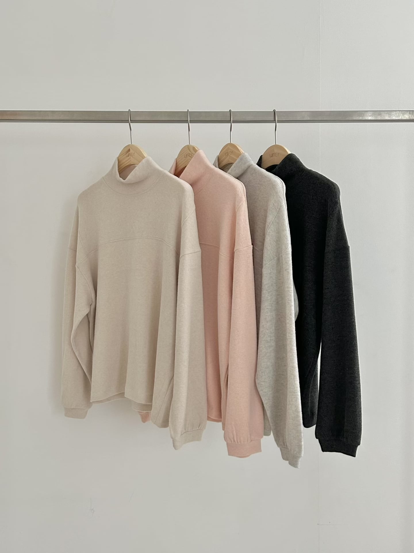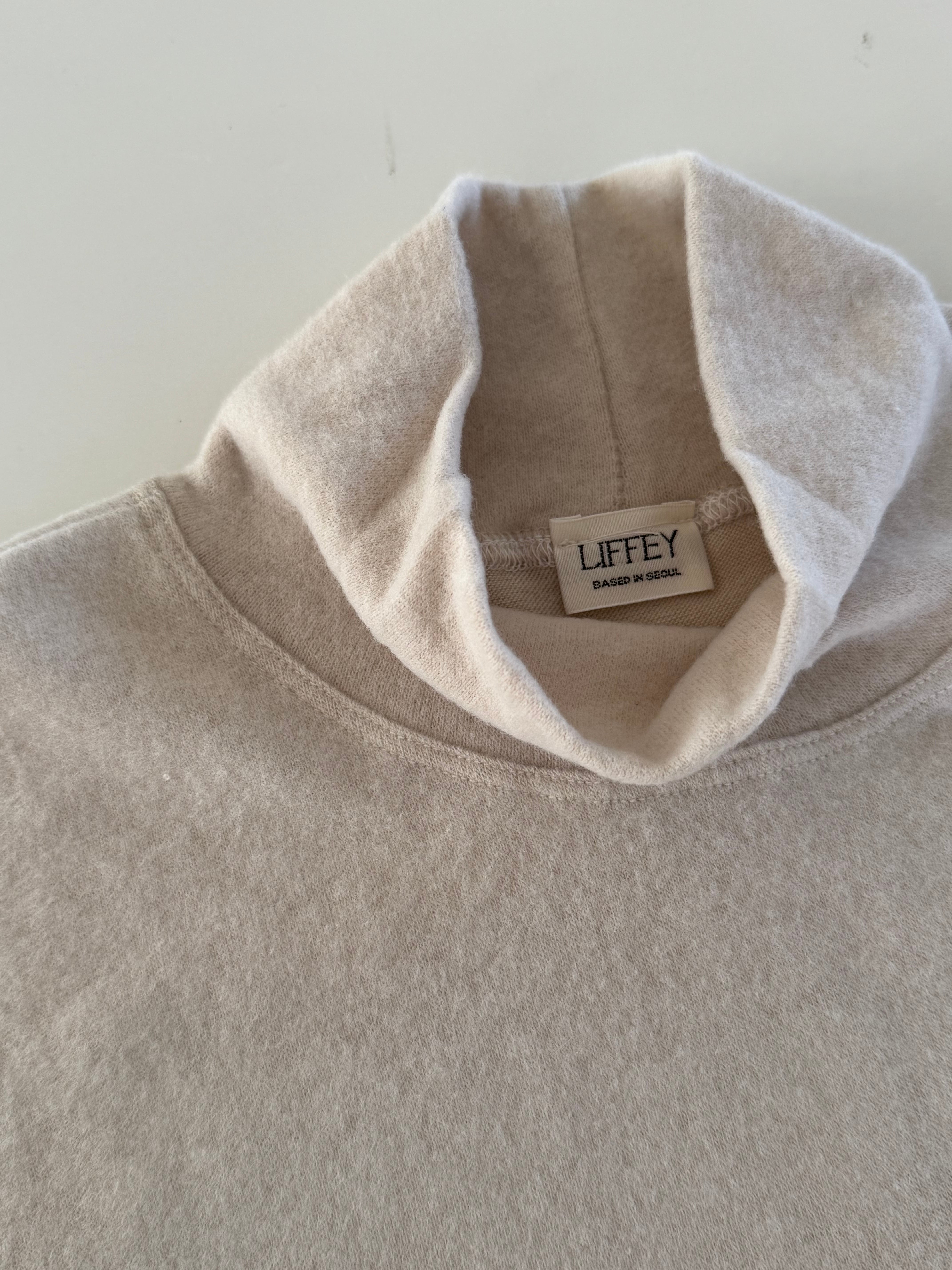 首元を軽く包むハイネックが、窮屈さなく自然に立ち上がり、