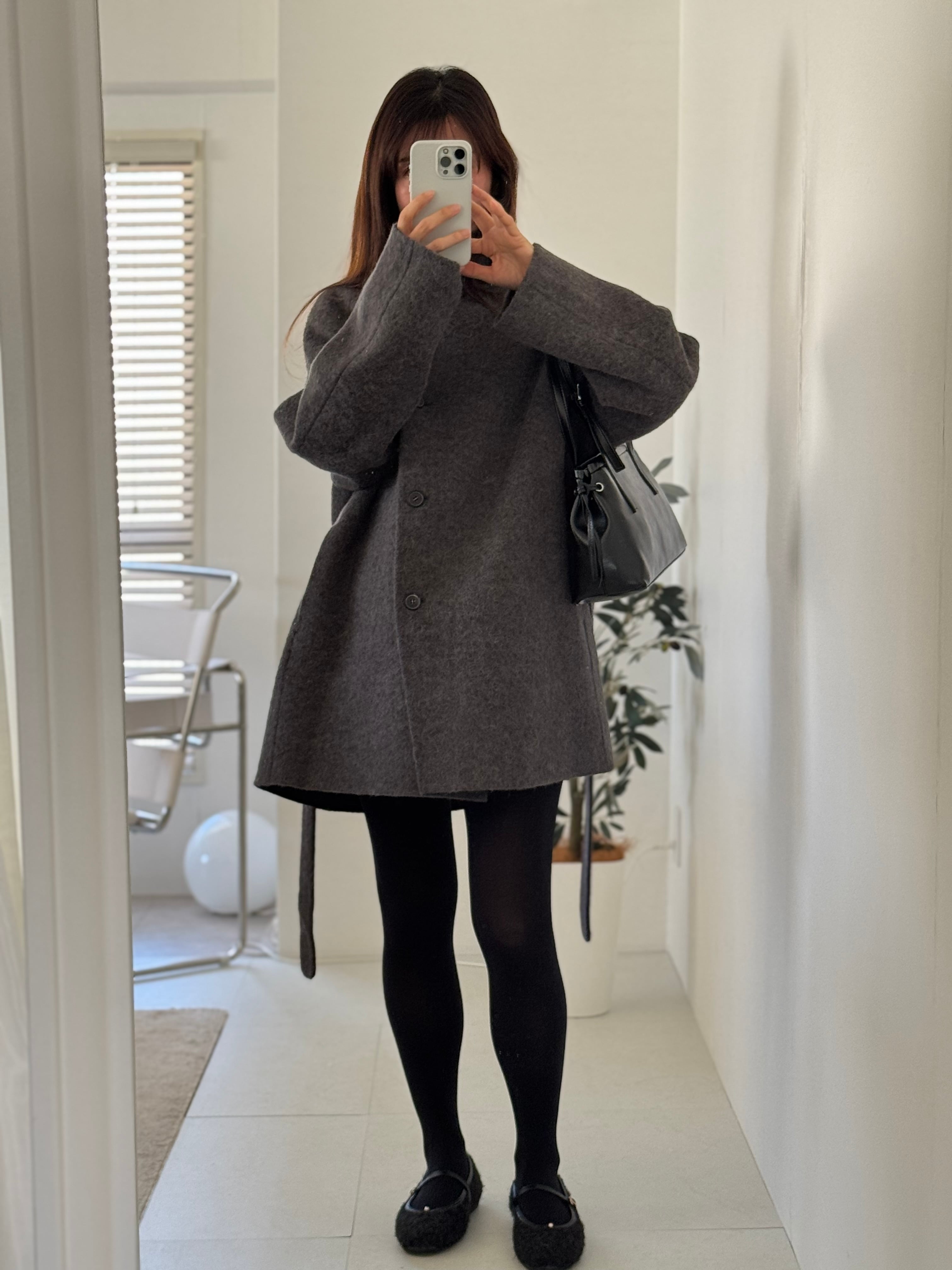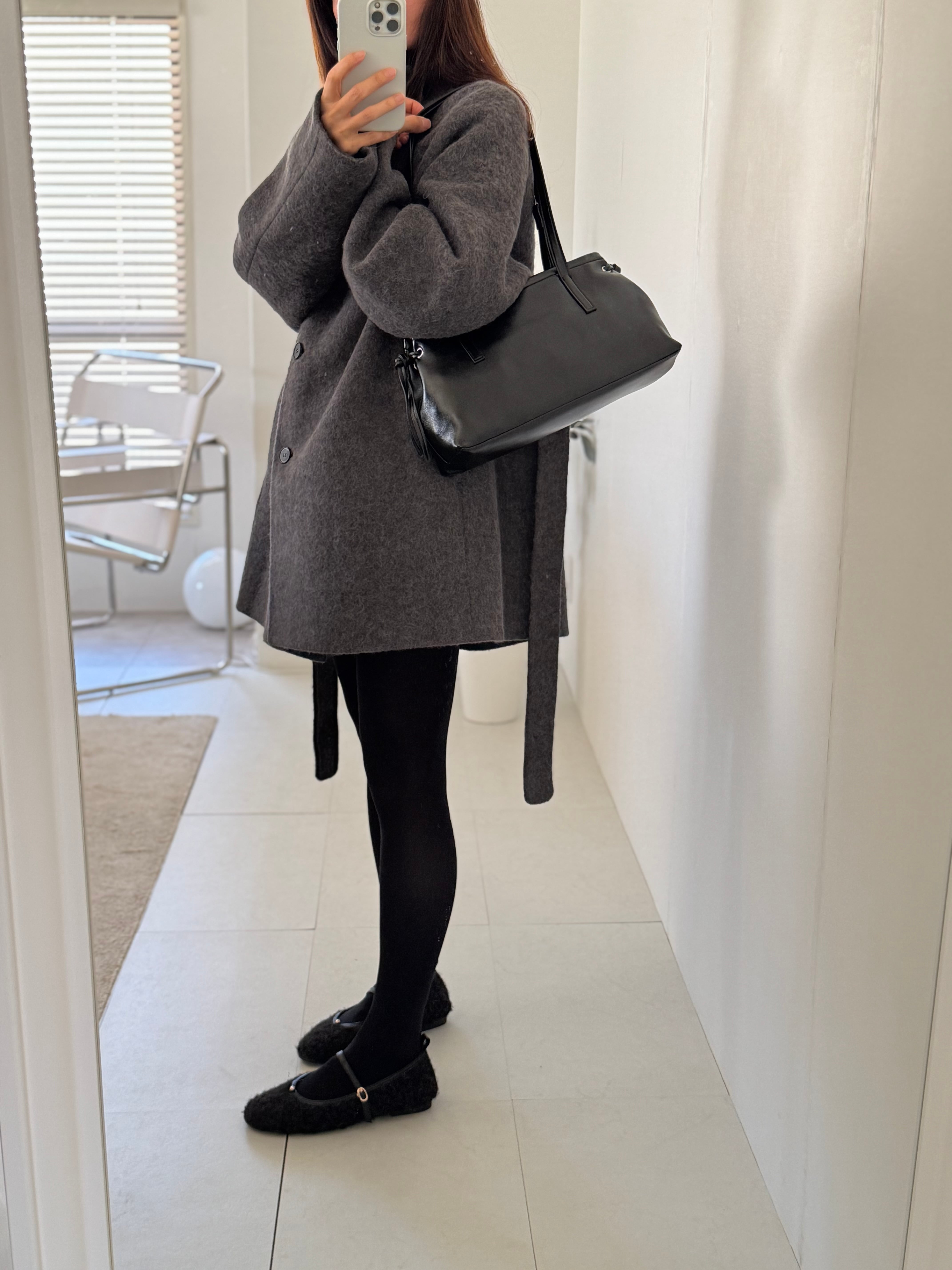 コートの上からでも肩掛けしやすく、