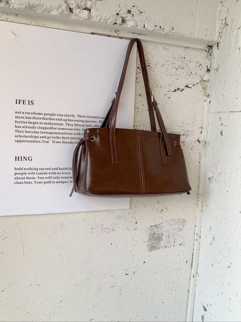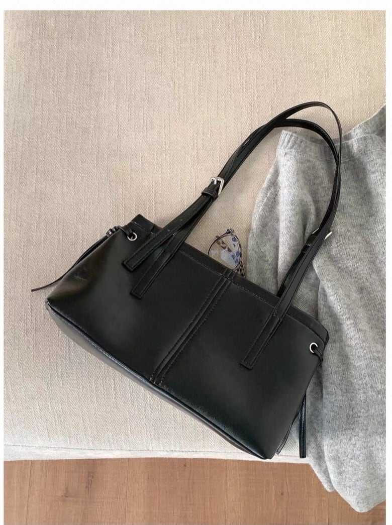 上品なツヤ感と、なめらかな質感が魅力の合皮レザーバッグ。