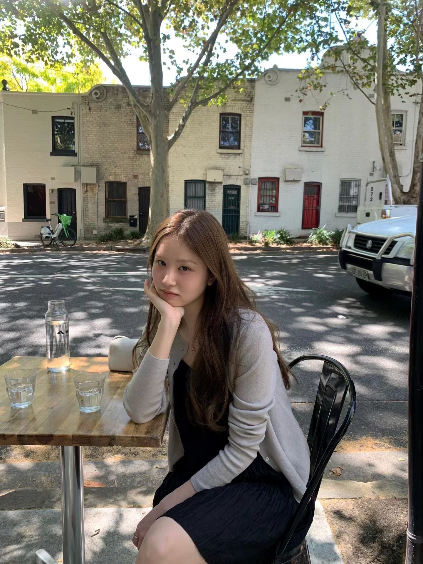 膝上丈のミニ丈で華奢な印象を与えつつ