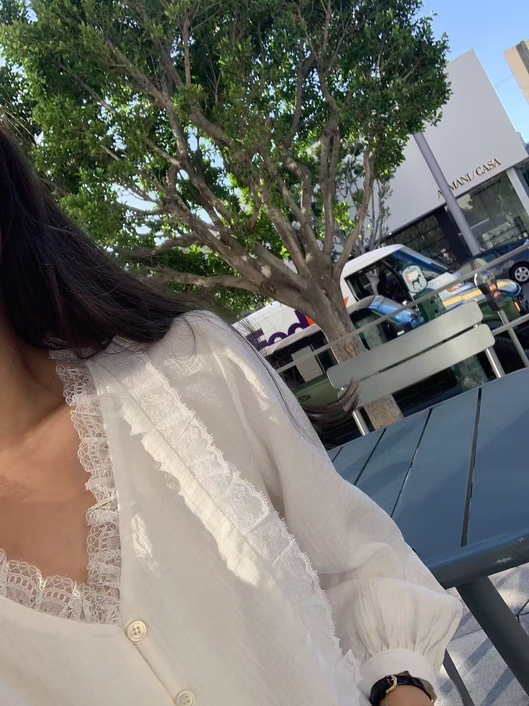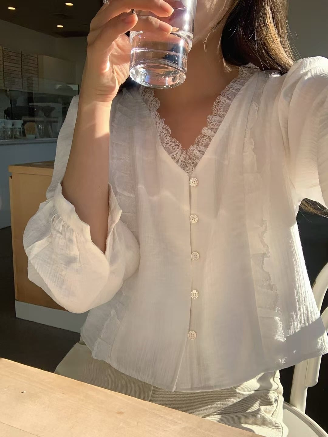 ヴィンテージのフリルレースのディテールが際立っています。