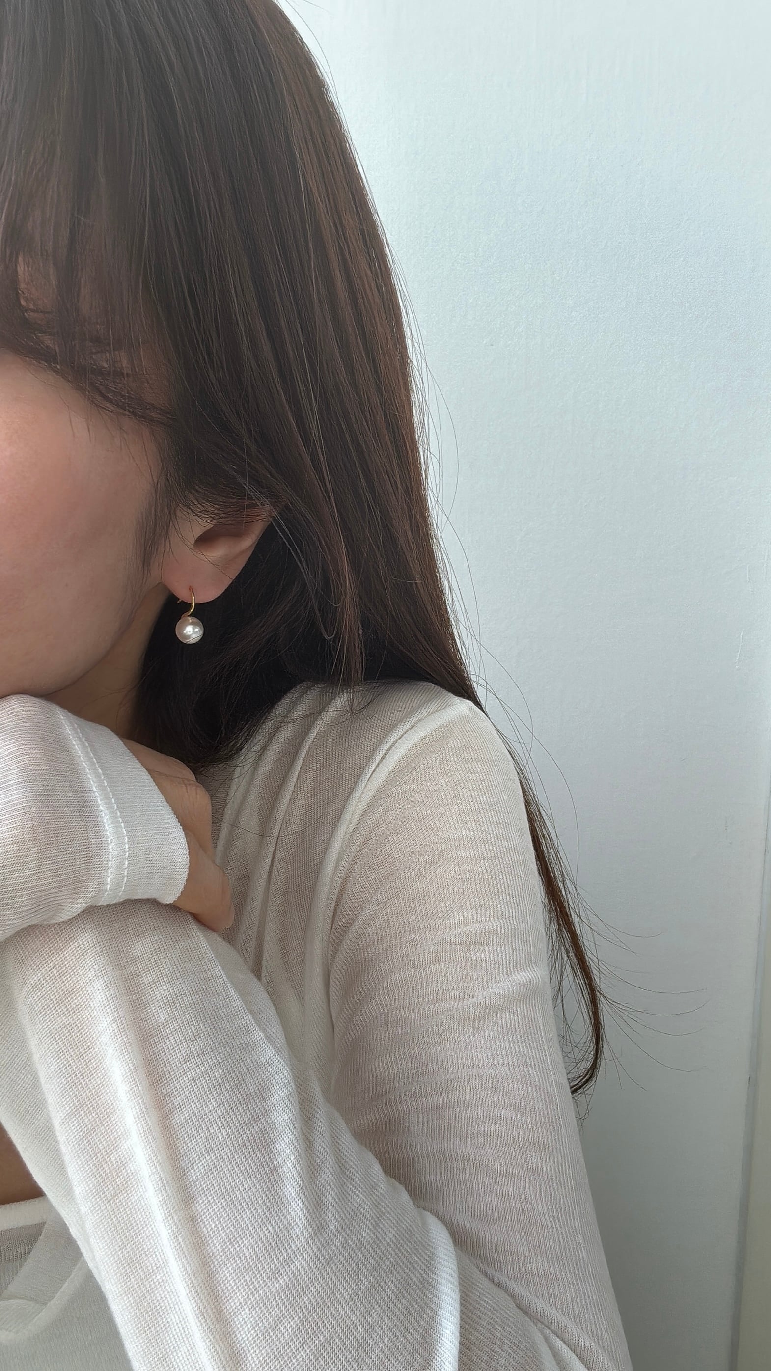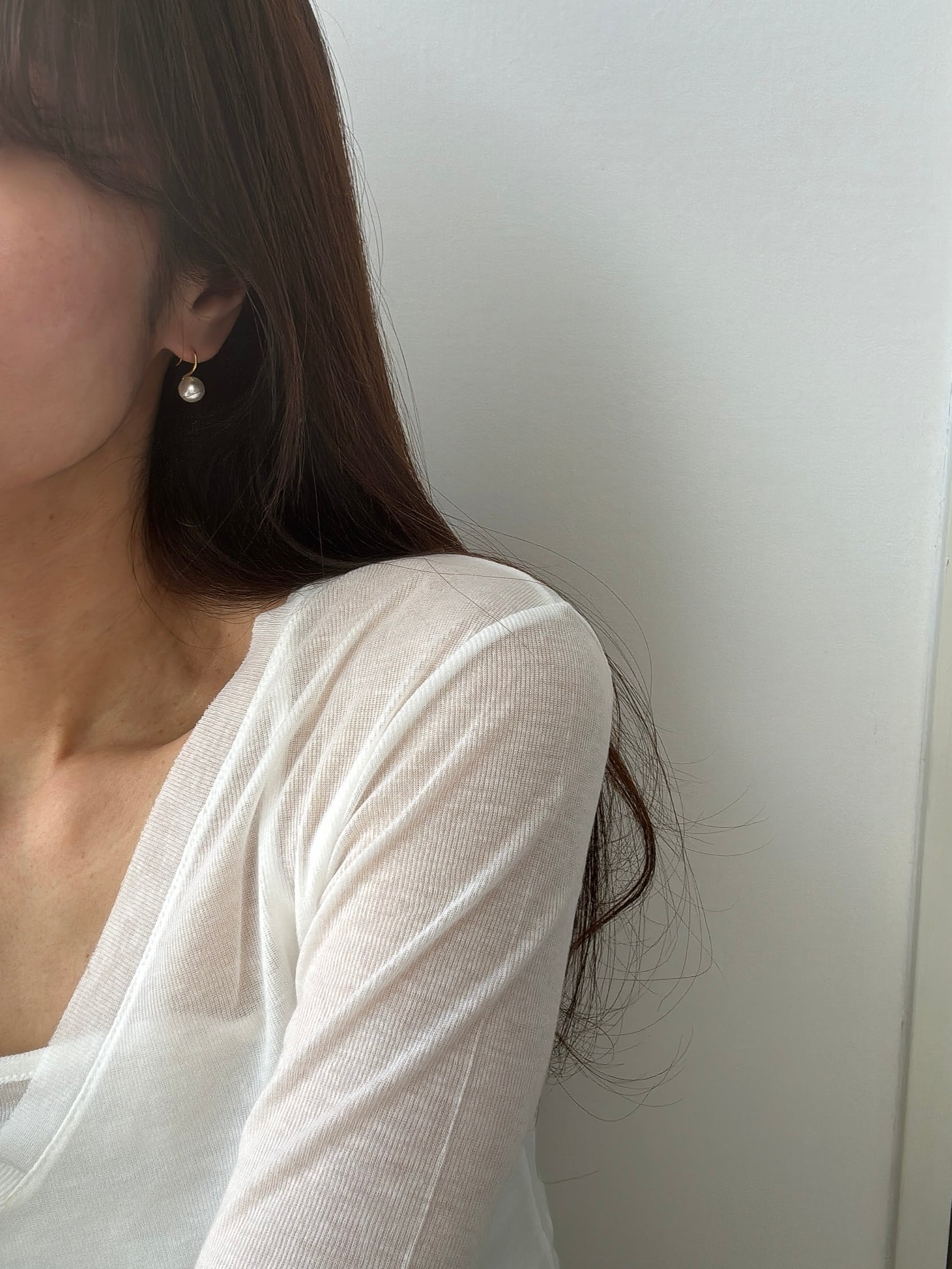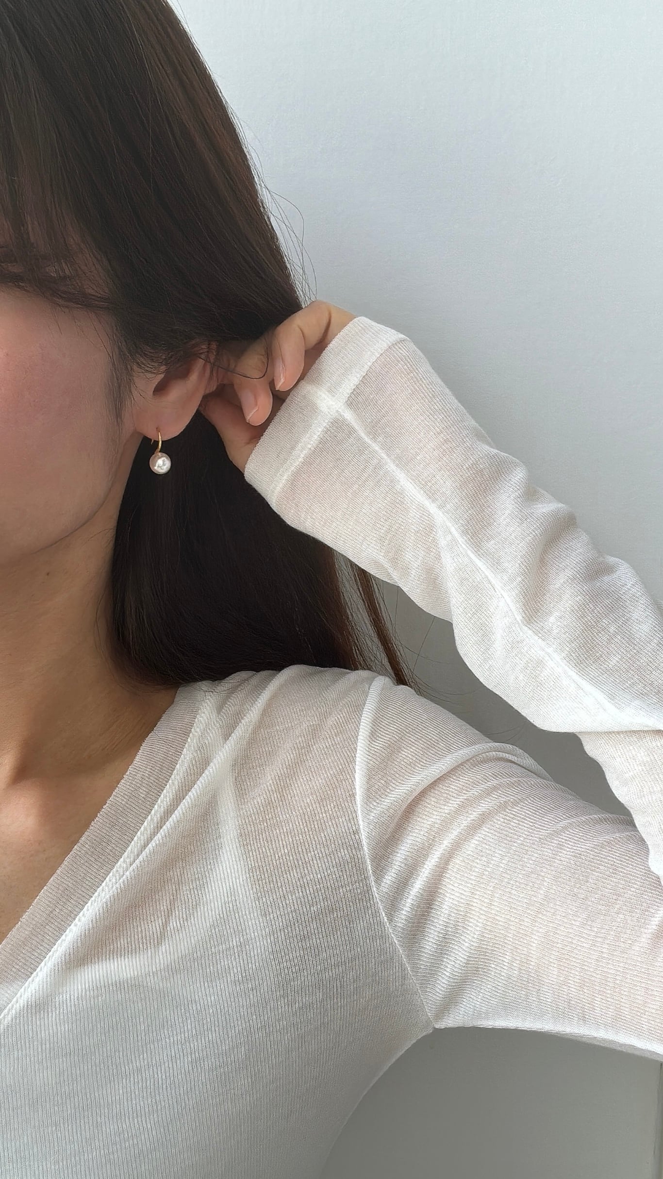 小粒パールと繊細なフックラインが印象的なミニマルピアス。