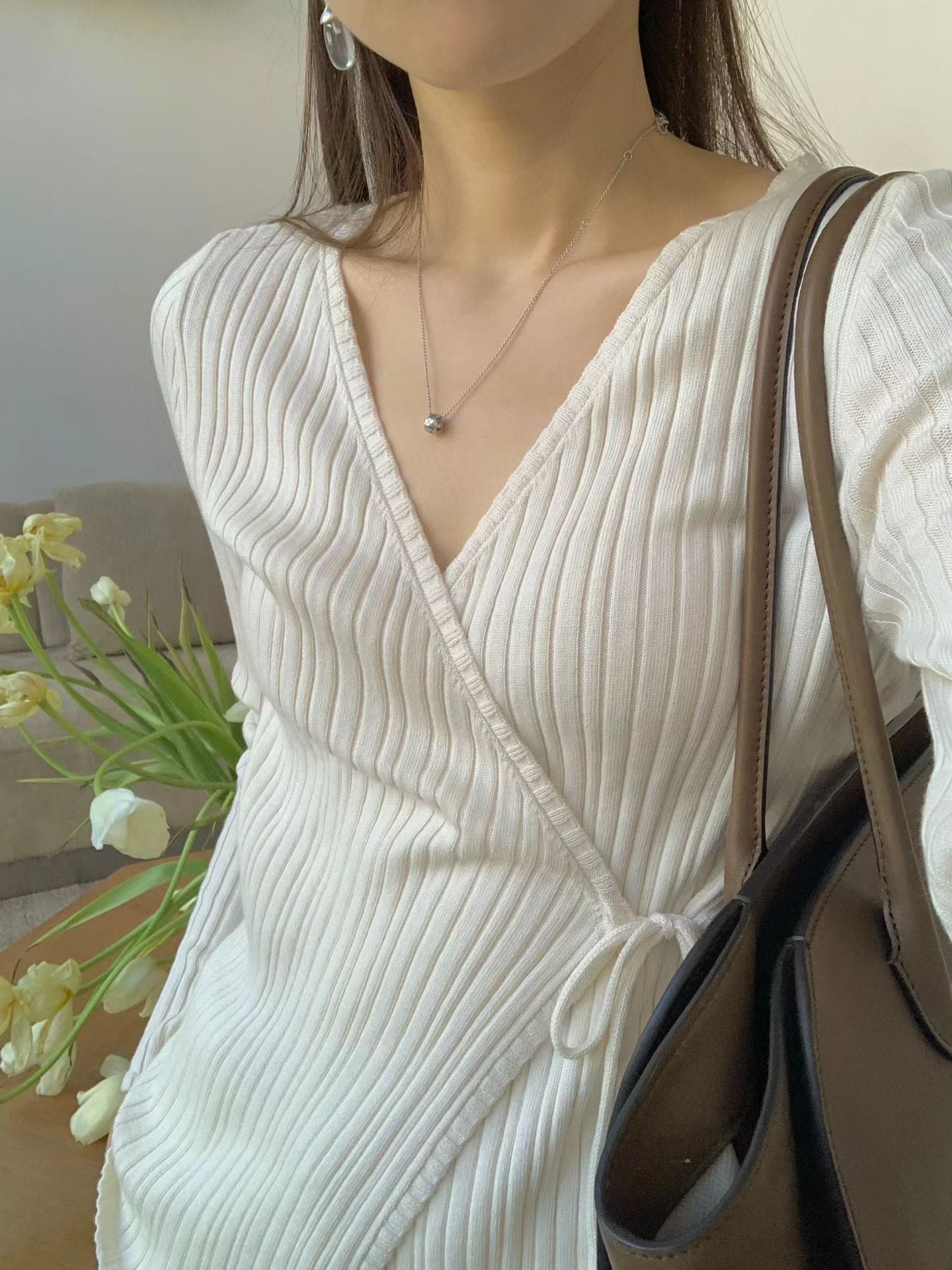 (予約) ounce / Ruffle rib wrap cardigan 2color