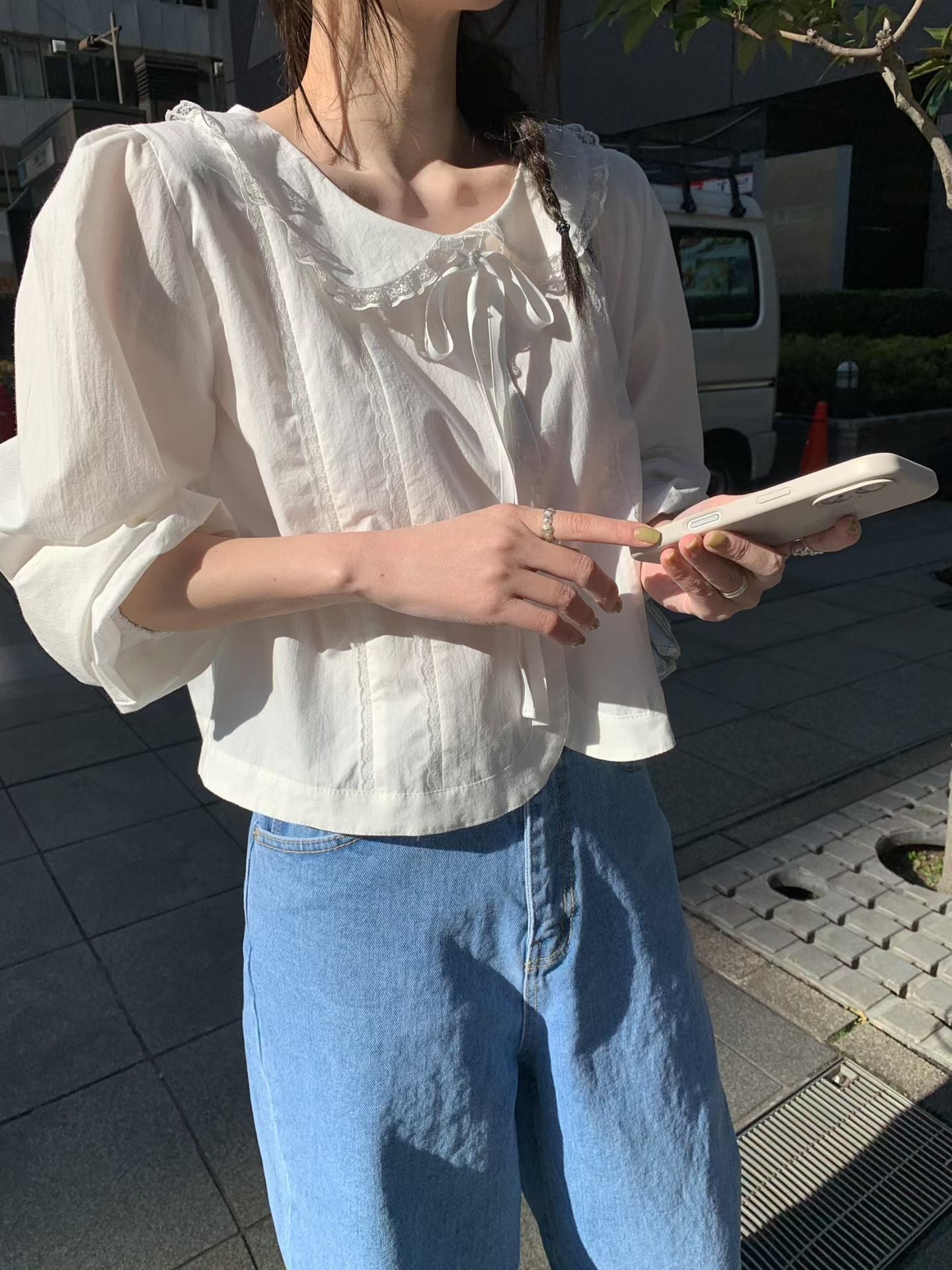 (予約) mellounge / Noah race blouse 1color
