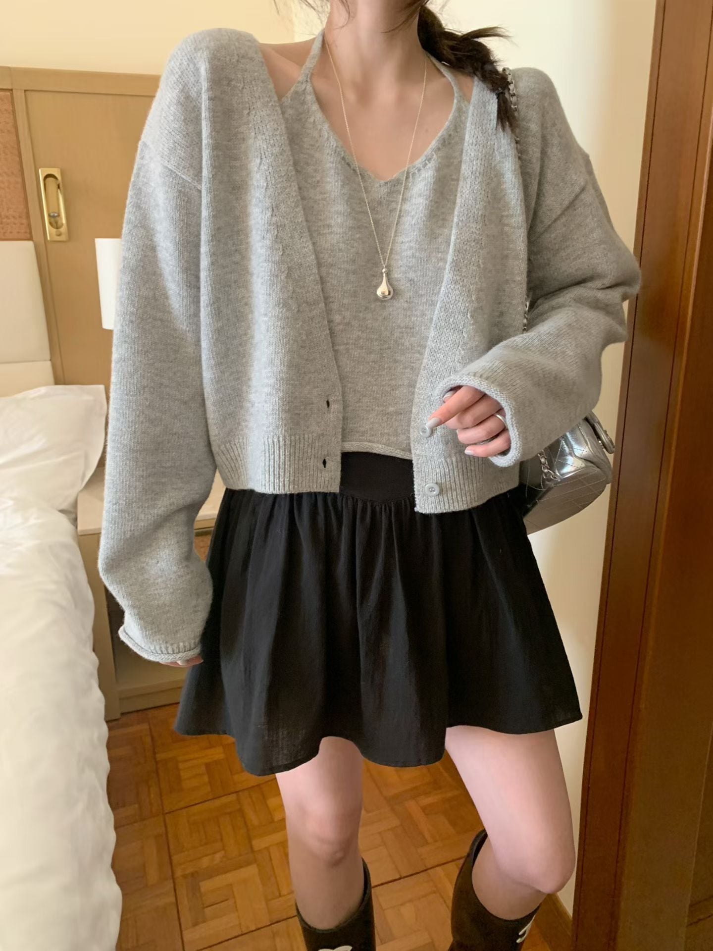 (予約) mellounge / Halter top knit cardigan 3color