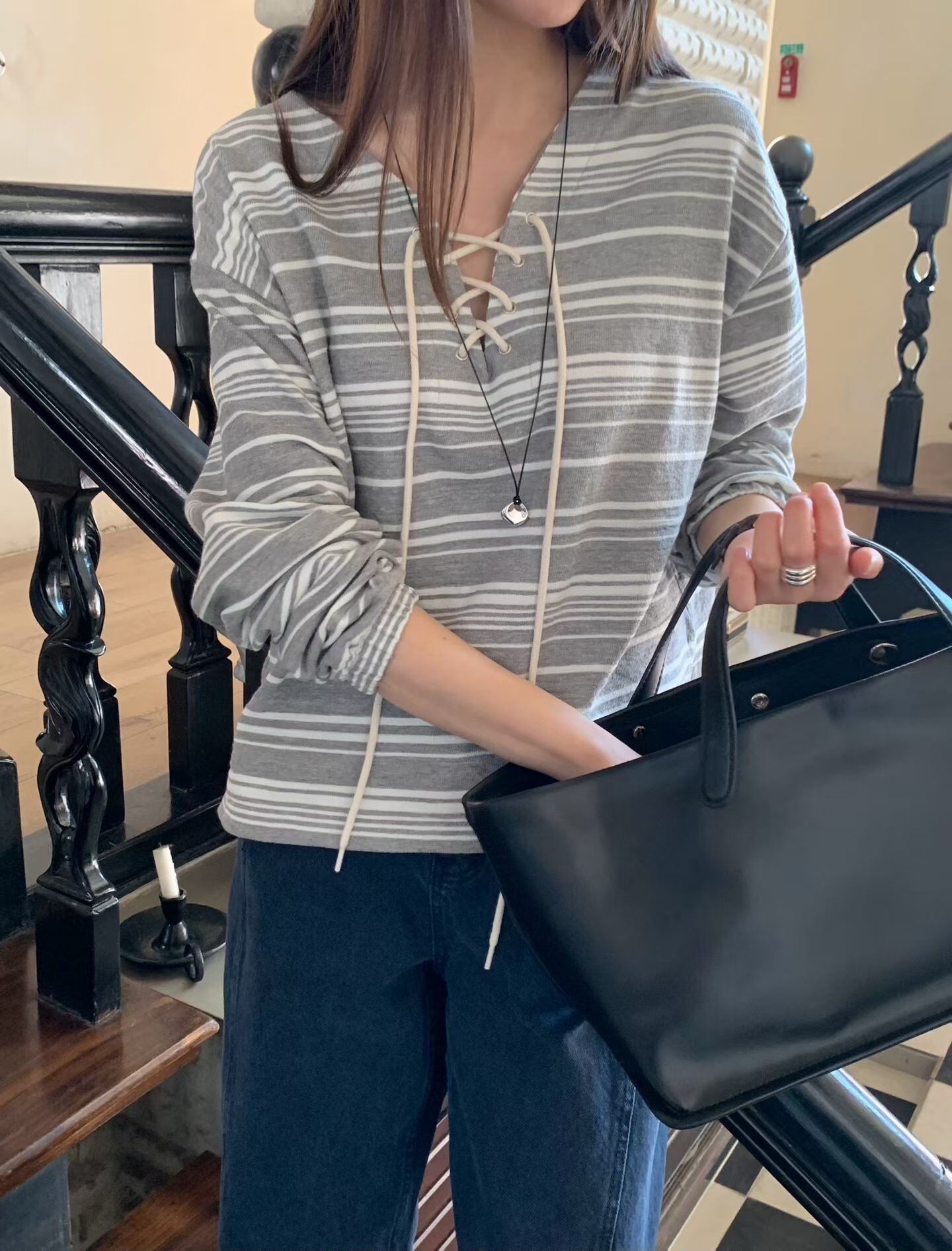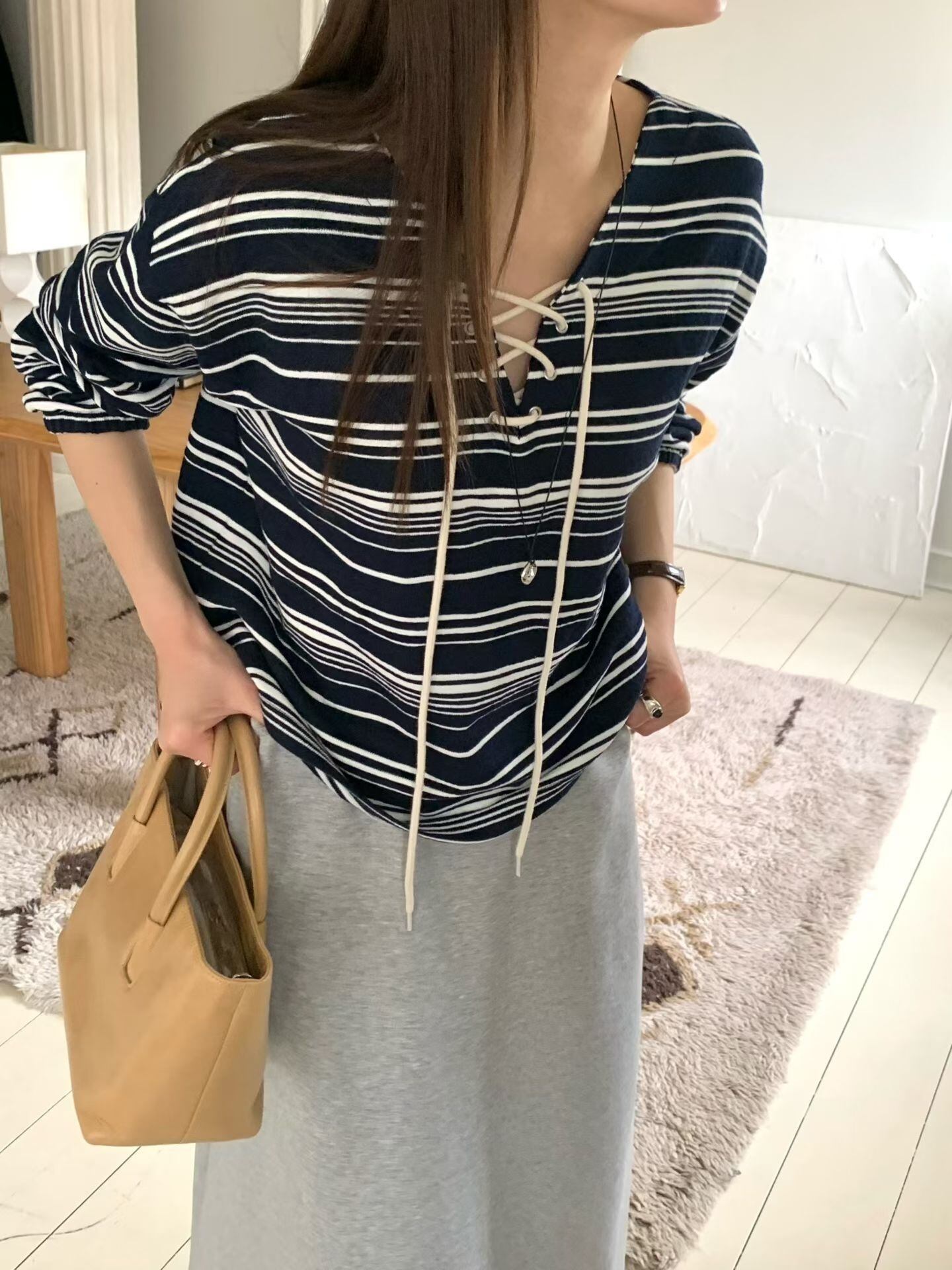 (予約) signature / Eyelet striped tee 2color
