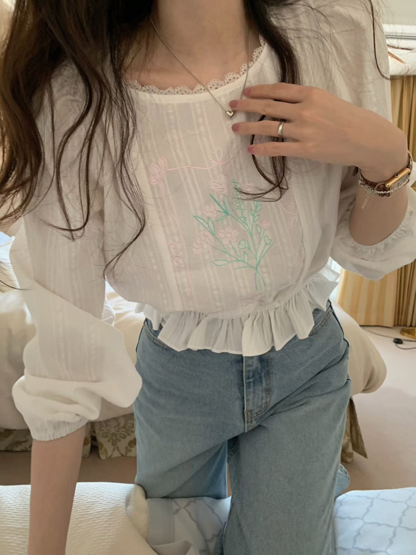 (予約) pretty young thing / Bouquet embroidery blouse 1color