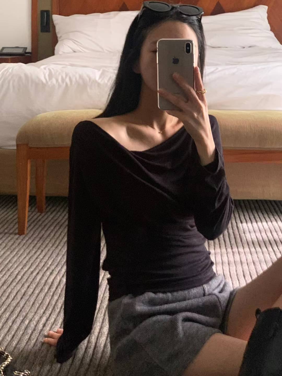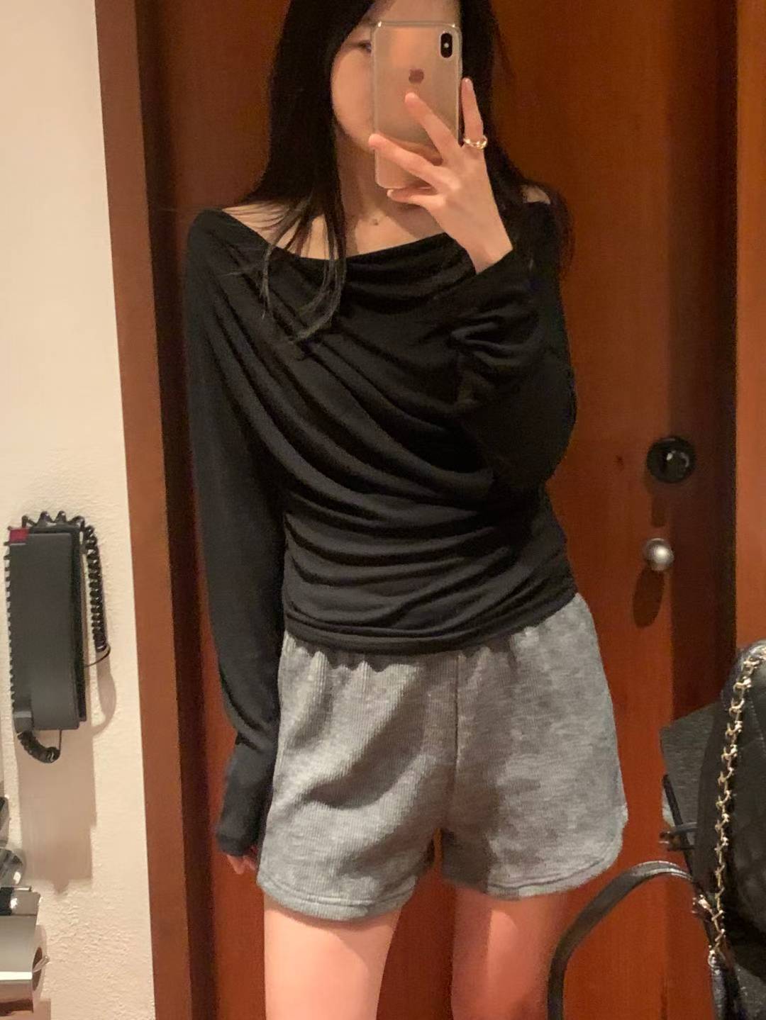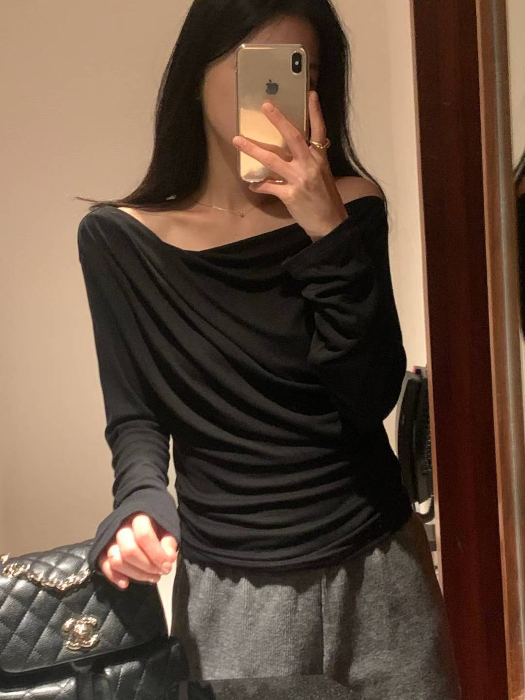 柔らかな落ち感のある素材がボディラインに優しく沿い、