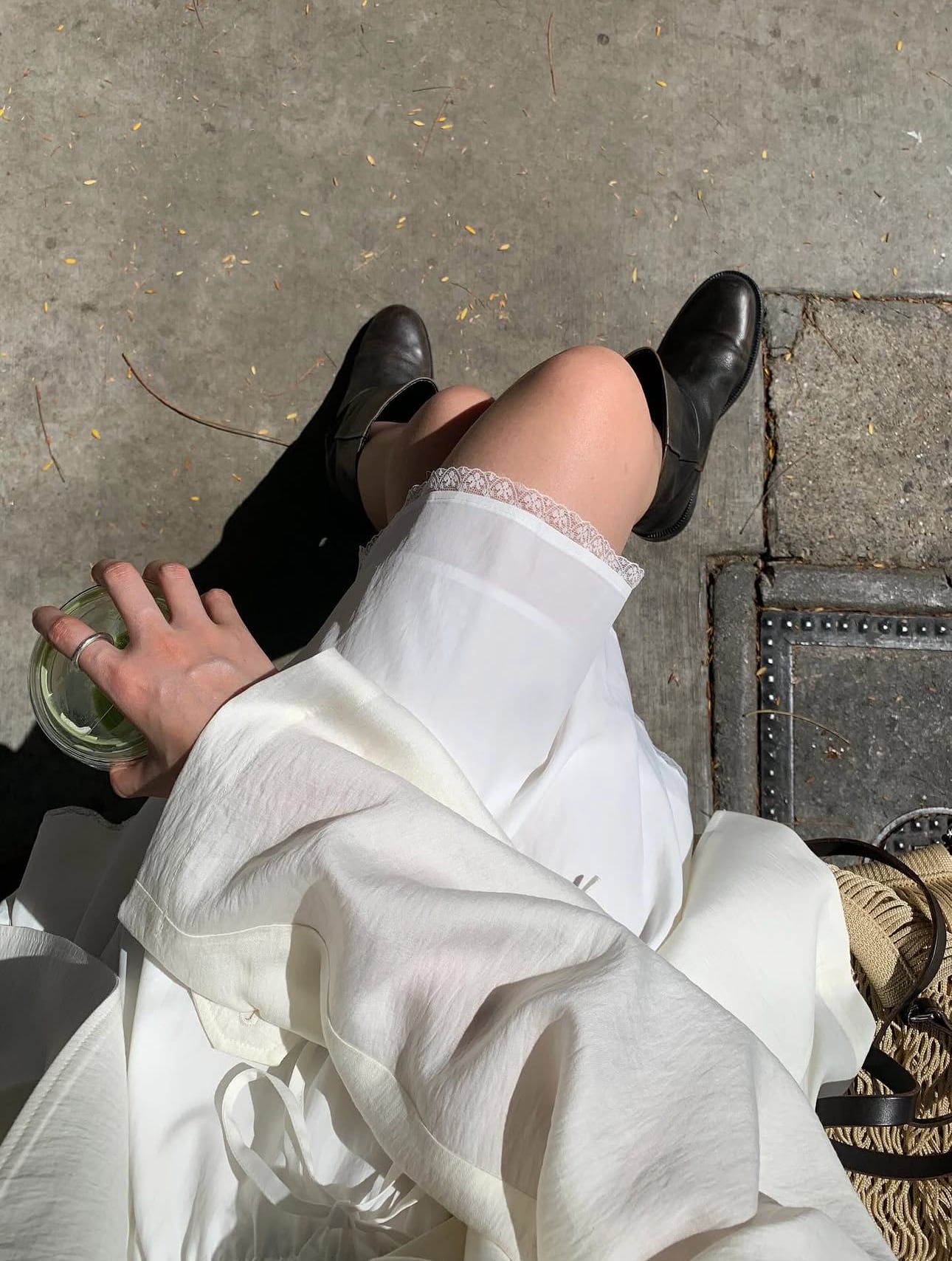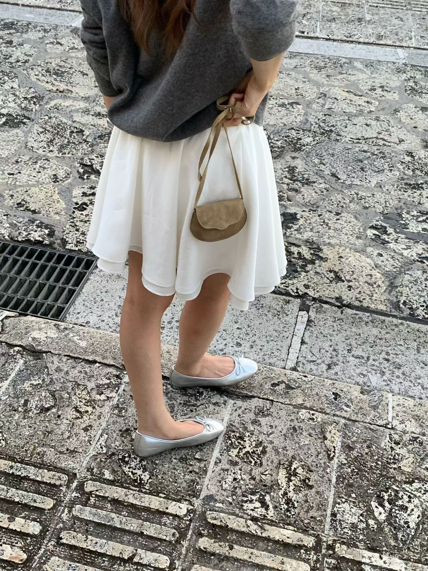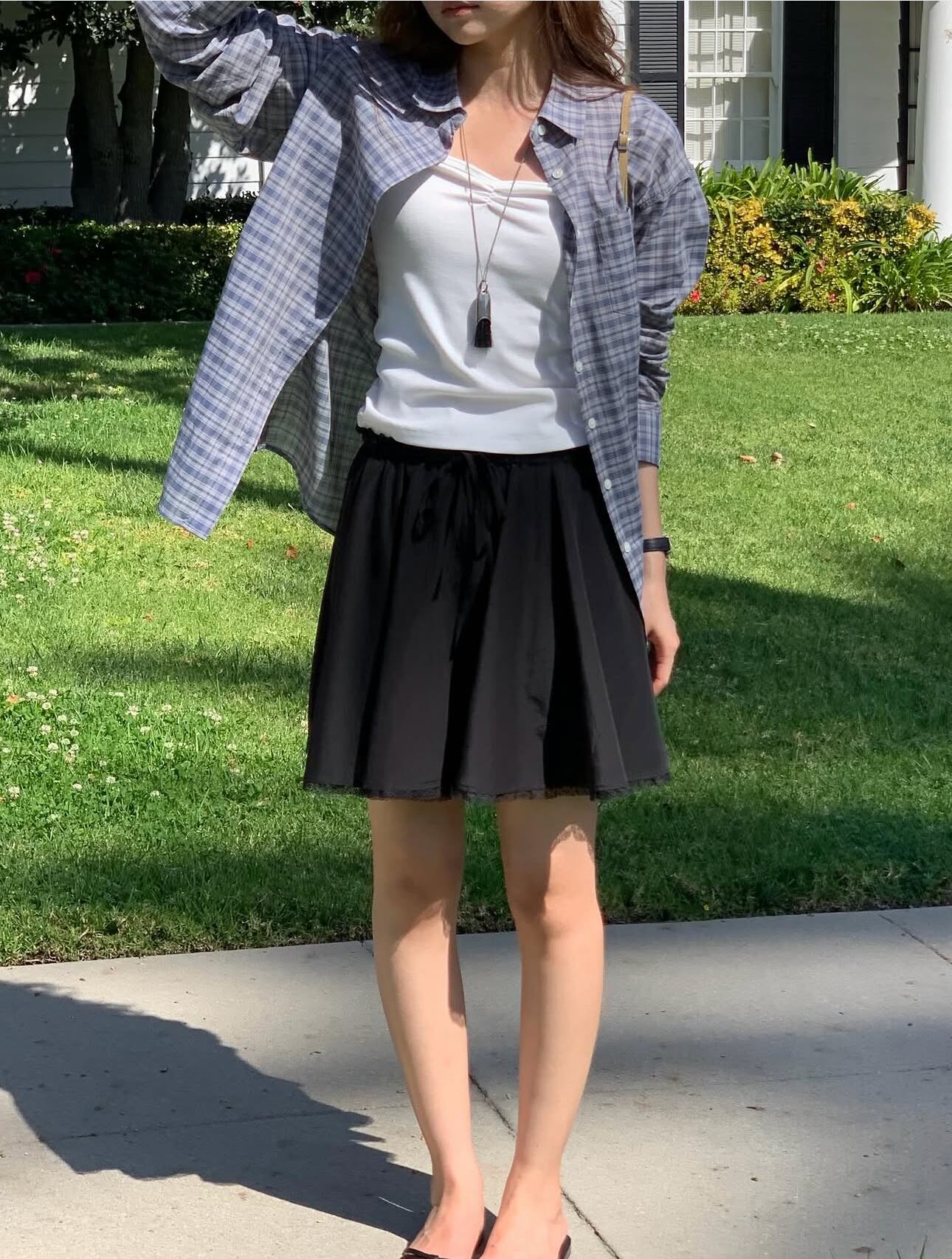 裾のレース仕上げがさりげないアクセントとなり、女性らしい雰囲気を演出します。